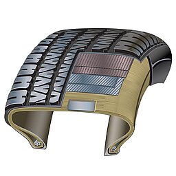 To increase the tire’s speed rating and handling, the tire tread is reinforced with Kevlar® (aramid). Achieving a secure bond between the tread material and the Kevlar® meshing so the tire can withstand high g-forces is of crucial importance. In mass production, this adhesion is promoted by pre-treating the aramid mesh with caustic sulfuric acid.