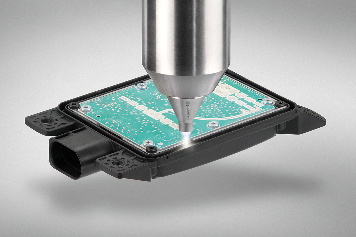Openair-Plasma® is used to modify surface characteristics so as to enhance the adhesion of materials (such as coatings) to the substrate (PCB).