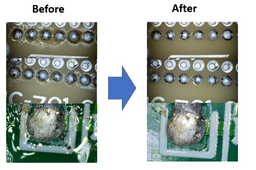 Flux can cause electrical failures if it remains on substrate. HydroPlasma® combines the powerful effects of Openair-Plasma® with the chemical reactivity of water molecules to efficiently tackle even the most stubborn dirt and contaminants. Water is introduced into the plasma process and ionized, creating water molecules that provide a cleaning effect similar to dish soap—without the need for any chemical additives.