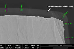 The PlasmaPlus® coating procedure takes things one step further: With a very energy-rich Openair-Plasma®, an extremely thin, solvent-free plasma polymer coating is applied creating a layer thickness of just 500 to 1000 nanometers. Not only does this layer provide protection against corrosion and environmental influences, but it also provides outstanding electrical isolation that can withstand voltages ranging from 50 V to several kilovolts and prevents the formation of dendritic structures which can often cause short circuits.