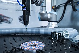 To ensure dosing accuracy, the robot cell is equipped with TCP calibration sensors and a precision scale. Depending on the application, the robot cell can dispense adhesive quantities ranging from 0.003 to 1 ml per minute reproducibly. A simulation and path planning tool is also used. This tool allows plasma and dispensing paths to be modeled digitally in advance, collisions to be identified, and motion sequences to be optimized. Virtual commissioning reduces engineering times and minimizes risks for complex component geometries.