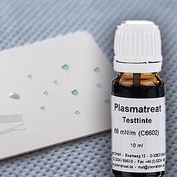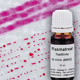A simple method to measure the surface energy of various materials, such as plastic, glass, and recycled or composite materials, is the determination using test inks. Plasmatreat test inks are an excellent tool for surface determination, quality assurance during ongoing production, and determination of accurate parameters for plasma treatment. All Plasmatreat test inks are manufactured according to DIN Draft 53364 or ISO 8296.