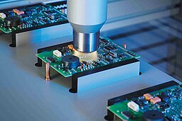Within the framework of the joint project Protect-Select funded by the German Federal Ministry of Education and Research, the companies Siemens, Epcos and Infineon, the Fraunhofer Institute for Manufacturing Technology and Advanced Materials, and Plasmatreat as a plant manufacturer have got together. The objective was to give electronic components a thin and long-time stable, selective anti-corrosion coating as a protection against corrosive influences and extreme climatic conditions, and all this in an economical and resource-efficient manner. The deposition of these coatings was accomplished by means of the PlasmaPlus® process providing for plasma polymerization at atmospheric pressure.
